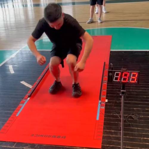 ทดสอบกระโดดไกล (กระโดดไกล) ระหว่าง 0 ซม. ถึง 300 ซม. ขึ้นไป โดยเพิ่มทีละ 1 ซม. เพื่อการวัดแบบละเอียด แถบอินฟราเรดสามารถปรับตำแหน่งเพื่อทดสอบได้ครั้งละ 104 ซม. เช่น 120-223 ซม. สำหรับผู้ที่มีสมรรถภาพปานกลาง หรือ 200-303 ซม. สำหรับผู้ที่มีสมรรถภาพสูงมาก แถบสามารถเปลี่ยนตำแหน่งได้ภายในเวลาไม่ถึงนาที แถบยังสามารถปรับตำแหน่งให้ยาวเกินปลายเสื่อเพื่อวัดได้สูงสุดถึง 400 ซม.