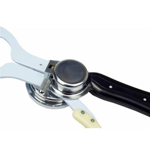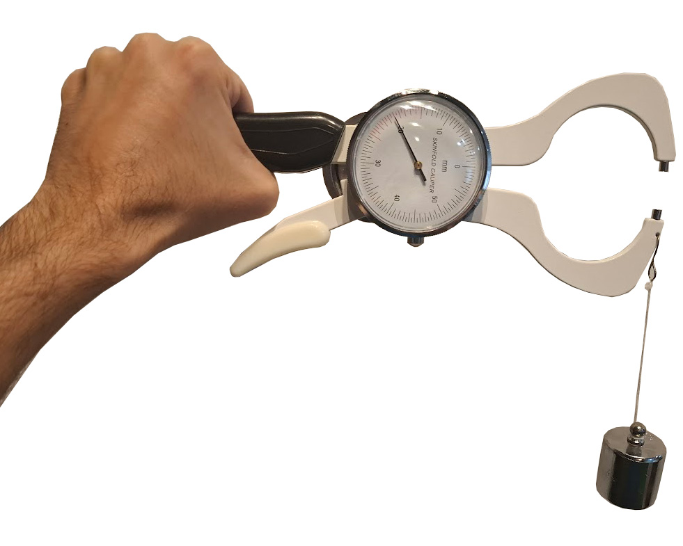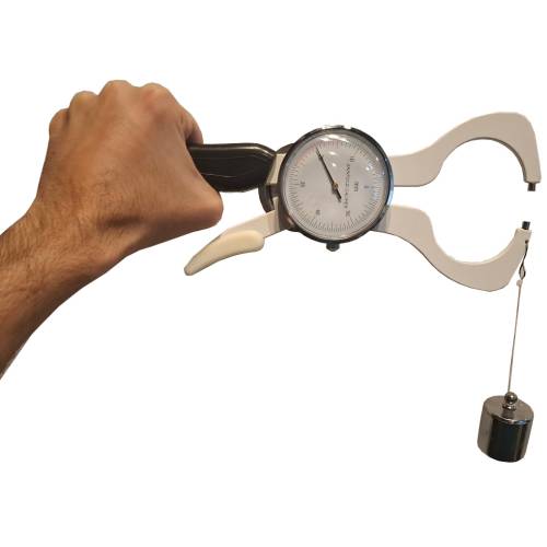 VideosIt measures from 0-60mm, and the squeeze pressure can be calibrated using the included weight.