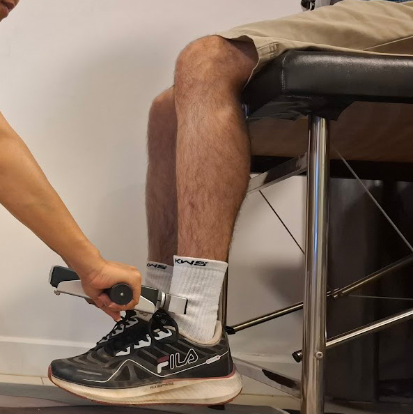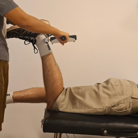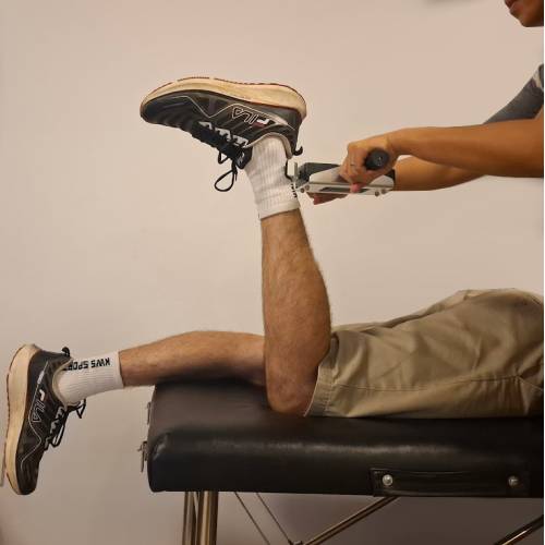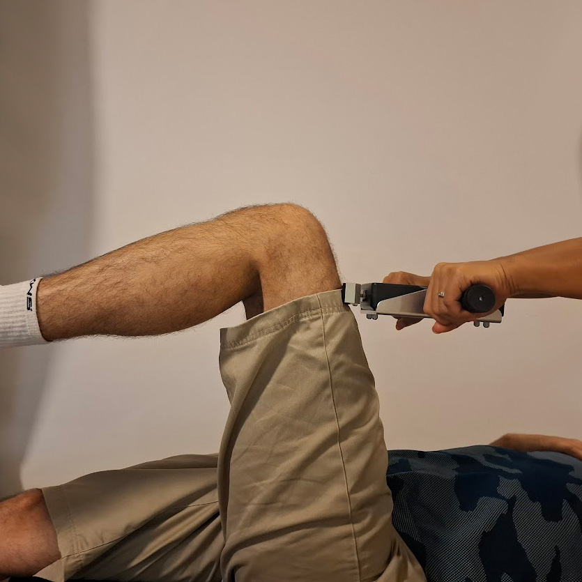 วัดแรงกล้ามเนื้อให้ลูกค้าได้โดยไม่ต้องไปคลินิก โรงยิม หรืออุปกรณ์ขนาดใหญ่ พกพาสะดวก เหมาะสำหรับสถานการณ์ต่างๆ เช่น การเยี่ยมบ้าน การเยี่ยมโรงพยาบาล หรือกล้ามเนื้อที่ไม่มีอุปกรณ์วัดเฉพาะ ผู้ประเมินต้องมีความแข็งแรงพอที่จะประคองอุปกรณ์ให้มั่นคงขณะที่ลูกค้าออกแรงต้าน นั่นหมายความว่าผู้ประเมินที่แข็งแรงหรือตัวใหญ่สามารถทดสอบกล้ามเนื้อขนาดใหญ่ได้ ในขณะที่ผู้ประเมินตัวเล็กจะพบว่ามีประโยชน์มากที่สุดสำหรับกล้ามเนื้อขนาดเล็ก (เช่น กล้ามเนื้อไตรเซปส์ ไบเซปส์ เดลทอยด์ คอ ข้อมือ ฯลฯ) หรือกล้ามเนื้อที่อ่อนแอ/บกพร่อง (หลังเป็นอัมพาต นอนติดเตียง หลังได้รับบาดเจ็บ) อุปกรณ์สามารถแสดงค่าเป็น kgf, N หรือ lbf สามารถใช้งานได้ในโหมด Live หรือ Peak (Live: ค่าที่อ่านได้จะอัปเดตตลอดเวลา, Peak: แสดงเฉพาะแรงสูงสุดจนกว่าจะกดปุ่มศูนย์) มีโหมด Save สำหรับบันทึกค่าข้อมูลลงในหน่วยความจำ (ใช้งานได้เฉพาะในโหมด Live เท่านั้น) เพื่ออ่านค่าในภายหลัง อุปกรณ์นี้ใช้โครงโลหะแข็งพร้อมด้ามจับ เพื่อให้ผู้ประเมินสามารถใช้มือทั้งสองข้างจับอุปกรณ์ให้มั่นคง เพื่อรองรับการวัดแรงที่สูงขึ้น คำแนะนำ แนะนำผู้รับบริการถึงวิธีการออกแรงต้านอุปกรณ์ โดยใช้กล้ามเนื้อและท่าทางที่ถูกต้อง เปิดอุปกรณ์ และตั้งค่าเป็นโหมด Peak หากต้องการใช้โหมดนี้ ยืนให้มั่นคง โดยจับด้ามจับทั้งสองข้างของอุปกรณ์ จากนั้นจัดวางอุปกรณ์เพื่อให้ผู้รับบริการสามารถออกแรง ตรง ลงไปที่สลักของอุปกรณ์ได้ หลังจากนั้นสองสามวินาที ให้ผู้รับบริการหยุดออกแรง บันทึกค่าที่วัดได้ จากนั้นกดปุ่มศูนย์ เพื่อให้อุปกรณ์พร้อมสำหรับการใช้งานครั้งต่อไป